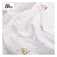 ファッション100% コットン薄白ダブルプリントガーゼ織りプリントモスリン生地卸売